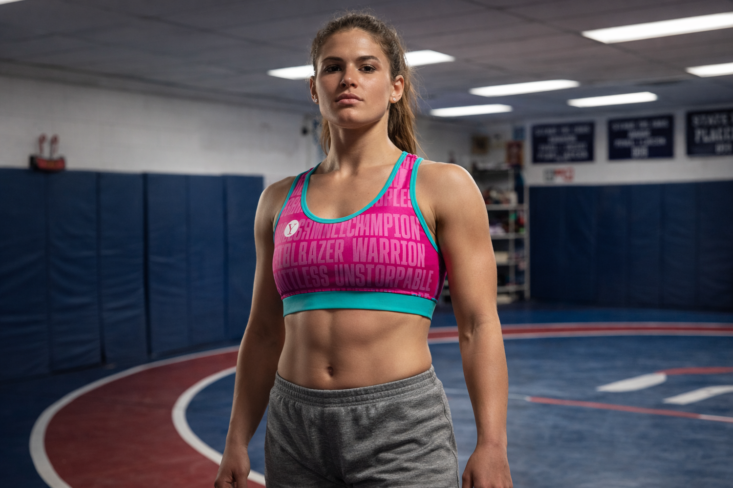 I am obsessed with the high-compression sports bra. The seamless comfort and racerback freedom make it so easy to move during wrestling practice or a heavy lifting session. It’s a truly versatile design that works for every sport I do. Plus, it looks great under the "I Am The Girl" tee!